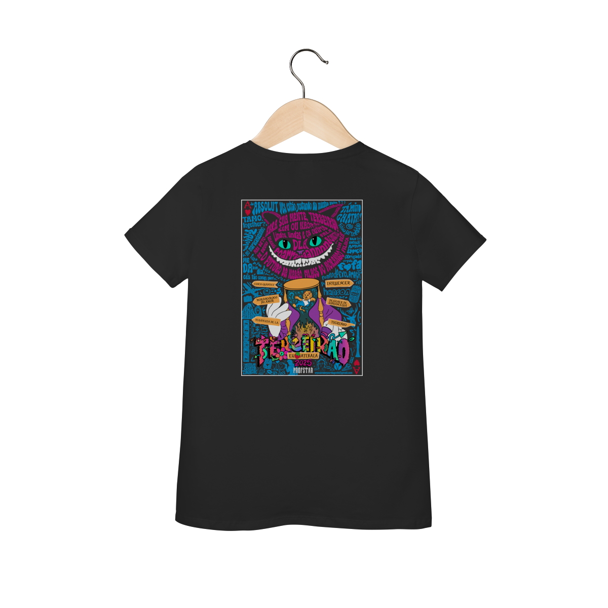 Entre no país das maravilhas do seu último ano de escola com a Baby Long Prime oficial do Terceirão! Inspirada no universo psicodélico e enigmático de Alice no País das Maravilhas, essa estampa única traz como destaque o enigmático Gato de Cheshire, sorrindo com aquele olhar de quem sabe que a jornada foi maluca... mas valeu cada segundo!