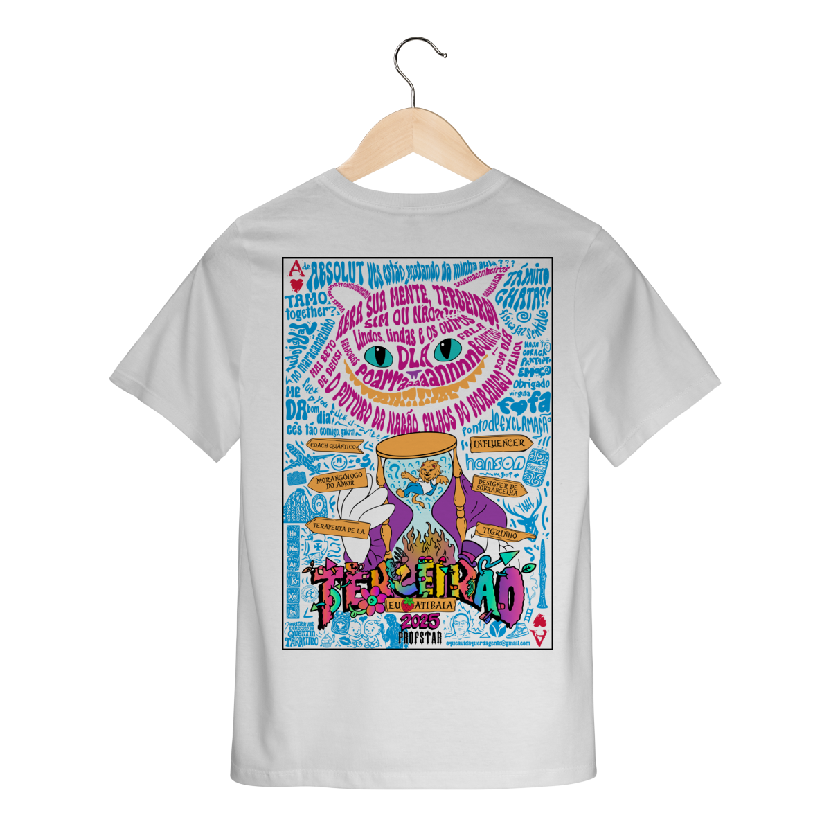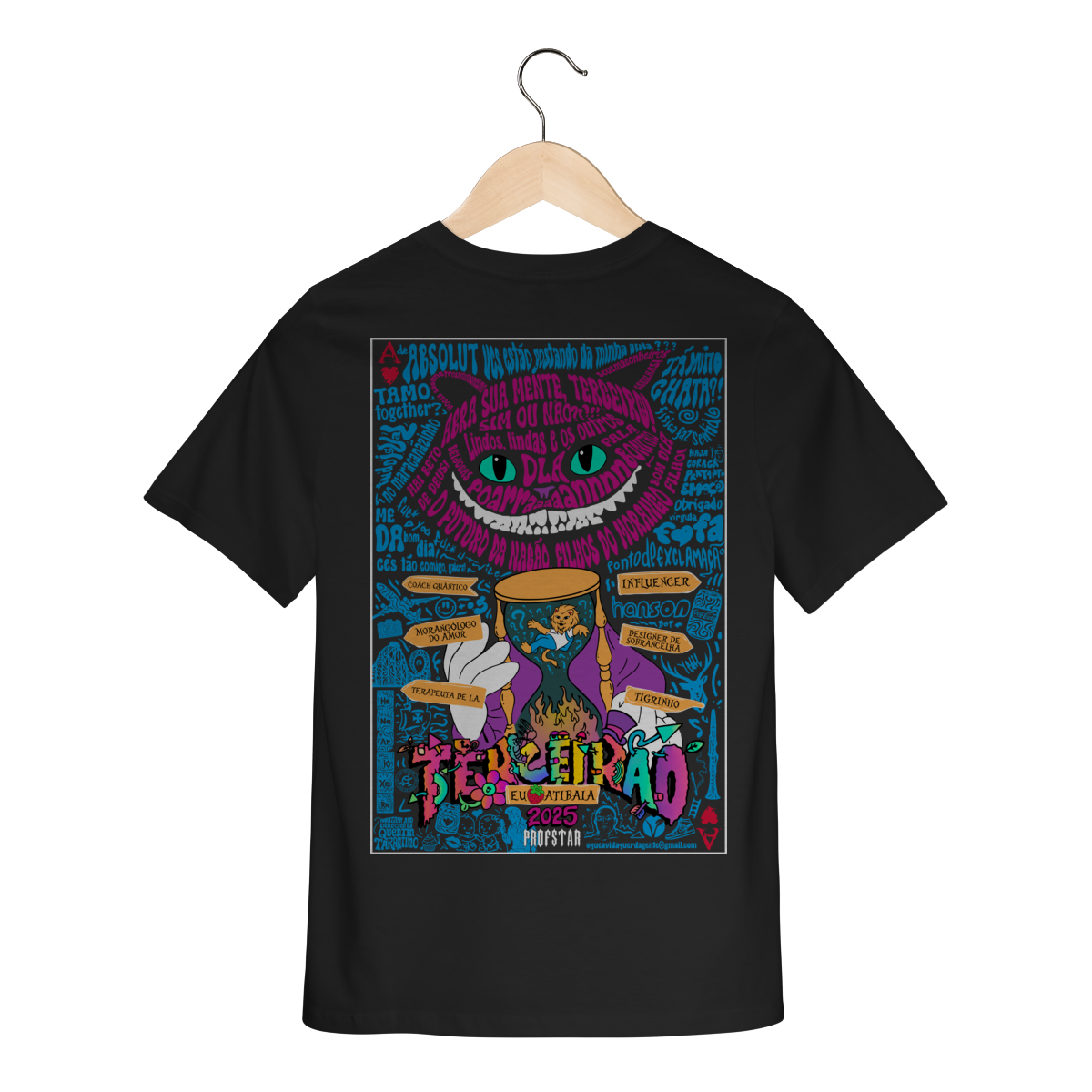 Entre no país das maravilhas do seu último ano de escola com a T-shirt Kids oficial do Terceirão! Inspirada no universo psicodélico e enigmático de Alice no País das Maravilhas, essa estampa única traz como destaque o enigmático Gato de Cheshire, sorrindo com aquele olhar de quem sabe que a jornada foi maluca... mas valeu cada segundo!