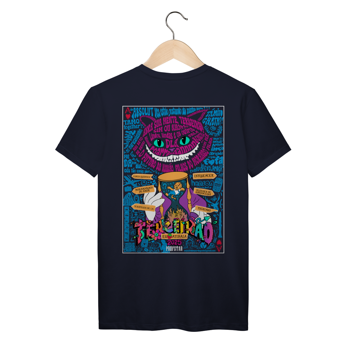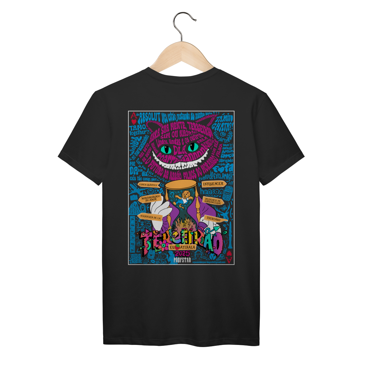 Entre no país das maravilhas do seu último ano de escola com a T-shirt Prime oficial do Terceirão! Inspirada no universo psicodélico e enigmático de Alice no País das Maravilhas, essa estampa única traz como destaque o enigmático Gato de Cheshire, sorrindo com aquele olhar de quem sabe que a jornada foi maluca... mas valeu cada segundo!